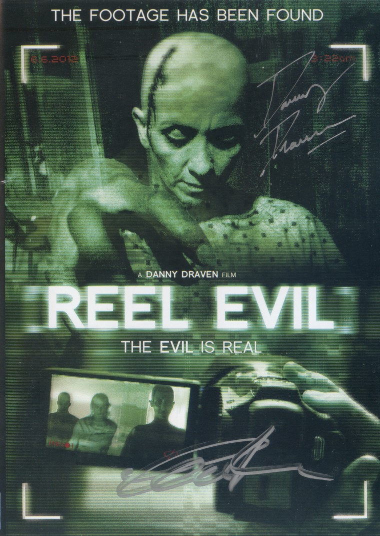Reel Evil is directed by, Danny Draven. Also an author. In his early thirties, he already has an impressive resume. By watching this film I can tell it’s going to get a lot better. From the intro to the end credits, he directed this movie to come out looking pretty damn cool. Filmed in six days (he states that and gives all kinds of details on the commentary track that came with the DVD).