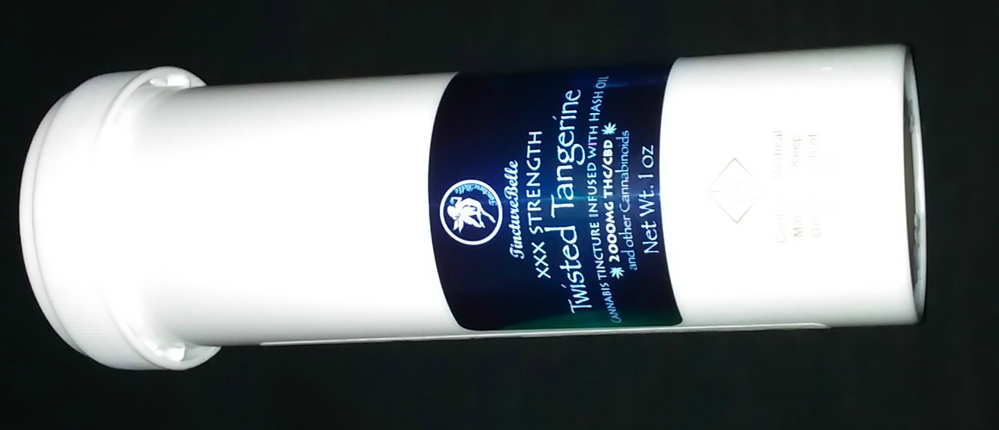 I mastered opening the TinctureBelle childproof container, and when tipped over, out came this old-fashioned glass medicine bottle. Must say so myself, good catch. The color was brown and at the top of the glass container, was an old-fashioned black eyedropper. Its packaging perhaps a throwback to the days of yesteryear? The label looks modern day with all the information one would expect (by law) to find. The medicine bottle twists open. Again with childproofing. Once mastered/opened, the glass eyedropper when carefully pulled up has a standard of measurements printed on it. Very easy to read. What stood out in my mind, is that wrapped so lovely all over the actual glass eyedropper and also inside the bottle, was tangerine-tasting (really yummy after a few tries) cannabis tincture (something I only previously read about) infused with HASH OIL – 2000 mg THC/CBC – and other cannabinoids. With a net weight of 1 oz. And I can’t forget; “XXX Strength.”
