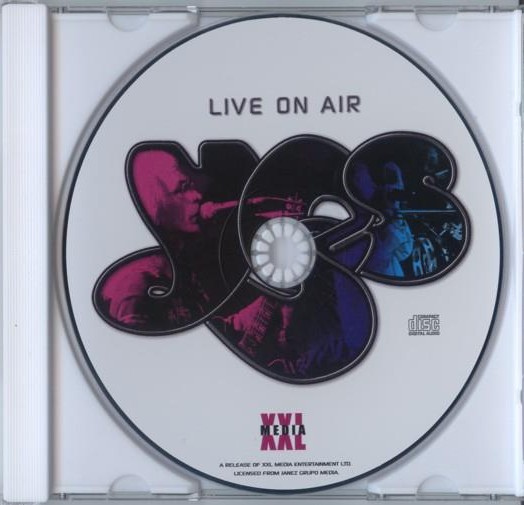 Near the end of the rock n’ roll CD selection, and right next to the music CDs they are blowing out for five bucks (which includes lots of really good classic rock stuff), I find the following; Yes – Live On Air. Looks like a newly released CD. No copyright is offered/included anywhere on what little printed words there are to this product. Internet research suggests that it might have come out late in the year 2011, or at least was first mentioned around then. The CD is news to me. I keep updated with Yes. Nothing out of their camp that I’m aware of that reflects this as an officially endorsed product.
