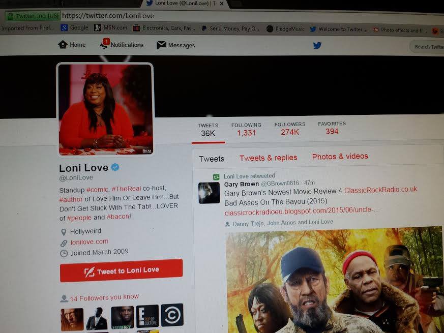 Good news! Appears we have a cast member who must have LIKED the review because SHE retweeted it on her official Twitter page; Actress, Comedian, Chat Show Host, and Author; Loni Love. Impressive…has over 274 thousand followers on Twitter. GREAT exposure for the station!
