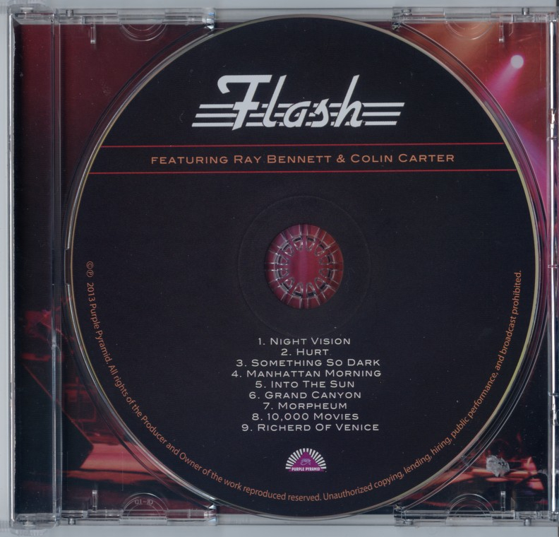 Original members Ray Bennett and Colin Carter got back to working together a few years ago, performing gigs and coming up with new material. The fruits of their labor are this new release. The title, “Flash…FEATURING Ray Bennett & Colin Carter”…a tip of the hat to days gone by perhaps? A symbolic victory in a way assuming the band that brought the lawsuit over the band’s name and prompted the line FEATURING is long gone. No matter whose name(s) appear after the name Flash, when playing Flash music, be it old or new, collectively they are and always will be just Flash. Again a contender in the world of current prog rock, minus Mike Hough, the original drummer, and with the addition of a few other players, putting out new material.