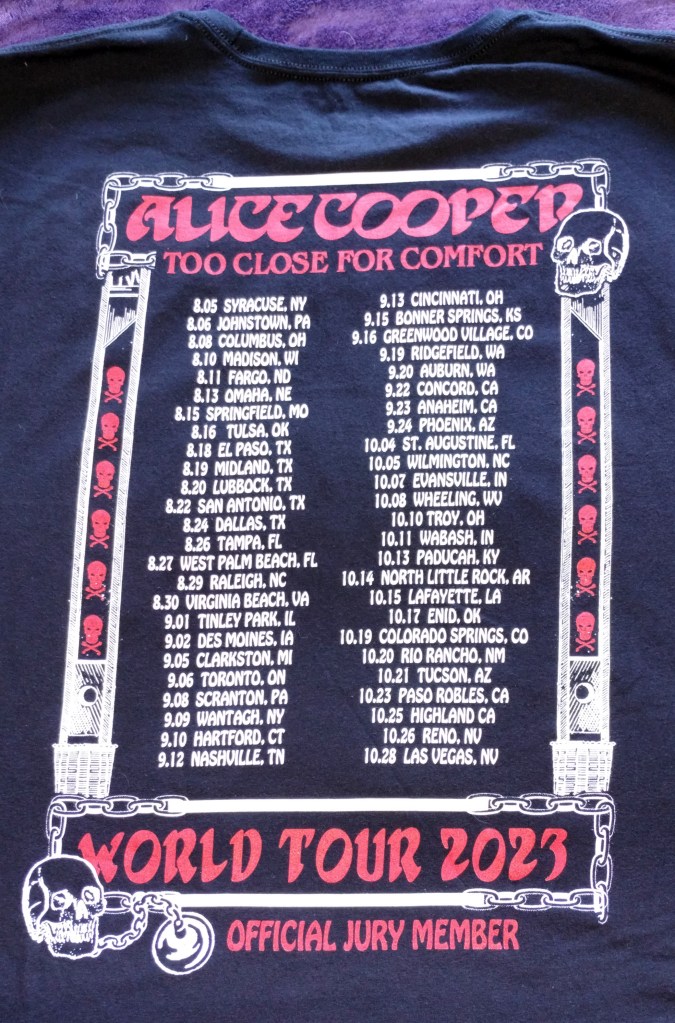 I attended the last show of the Alice Cooper – Too Close For Comfort Tour, which started last August. The band could not be any more fine-tuned than they were. No shit, the six of them, all at the same time, mid-song, could stop on a dime. The group had a cool-looking stage, with top-notch projections in the rear. It was a night of greatest hits and deep cuts from both the Alice Cooper band (1969 – 1974) and Alice Cooper (1975 – present) catalogs, including material off his latest studio album called, Alice Cooper – Road (2023).