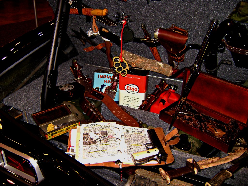 Another car that caught my attention was a fan tribute to the TV program, Supernatural. The jet-black 1967 Chevrolet Impala. The owners of this tribute car are from Texas and seem to be really nice people. Appear to seriously enjoy having the car, and people’s reaction to it. GREAT photo opportunities which I did myself. Sorry to say that most pictures taken came out too blurry to publish. OK because it was fun to see in person. Way cool automobile. A fantastic job with the details. Dedication I’d rate; A+. And remember…old men over fifty usually carry their own knives.
